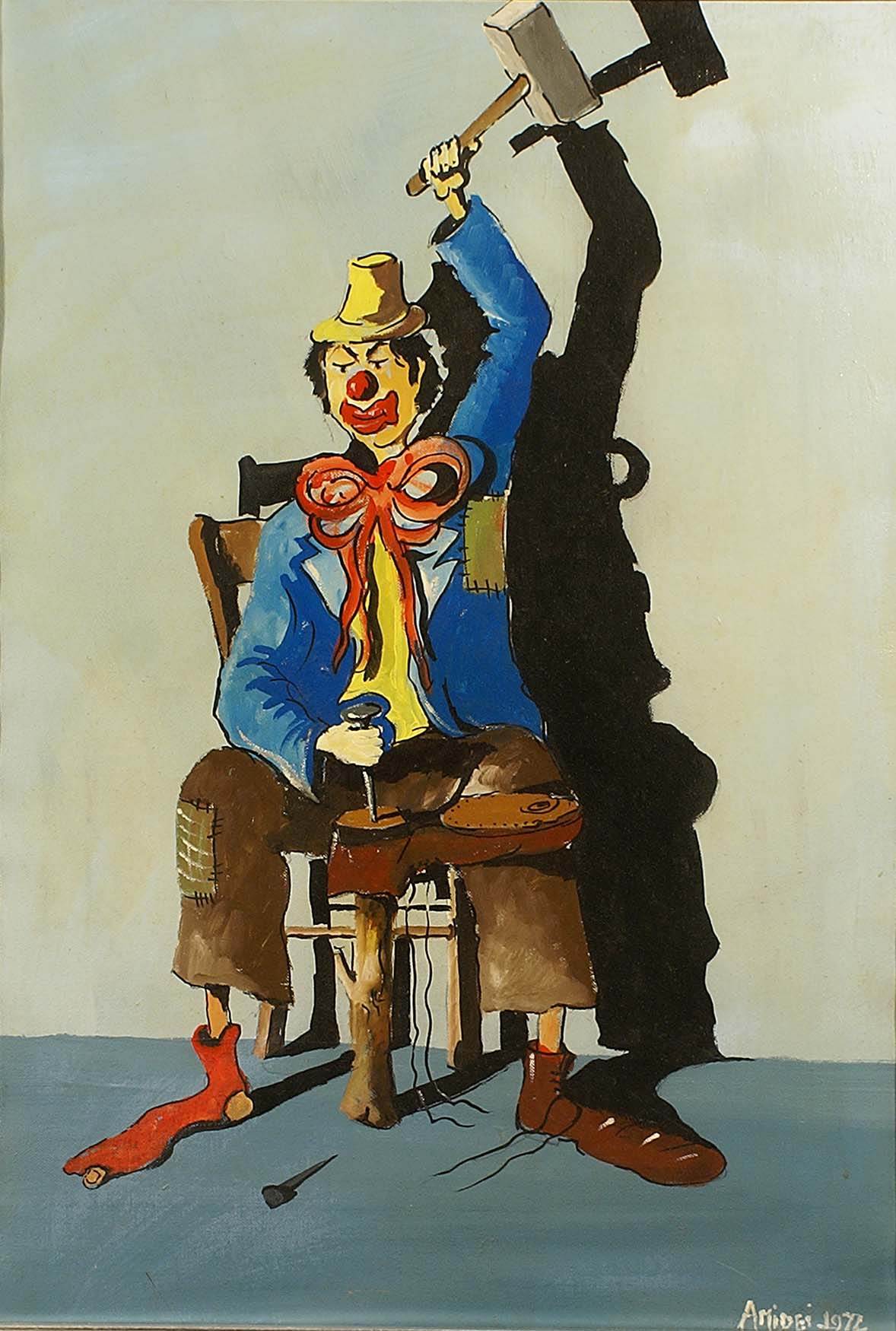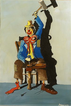 Franco Amidei (XX secolo), "Clown", olio su tela, cm. 62x43, firmato e datato...