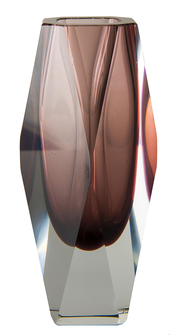 MANDRUZZATO - MURANO, Vaso a facce viola e talpa in vetro sommerso, 1960 circa, Murano, h. 21 cm,
