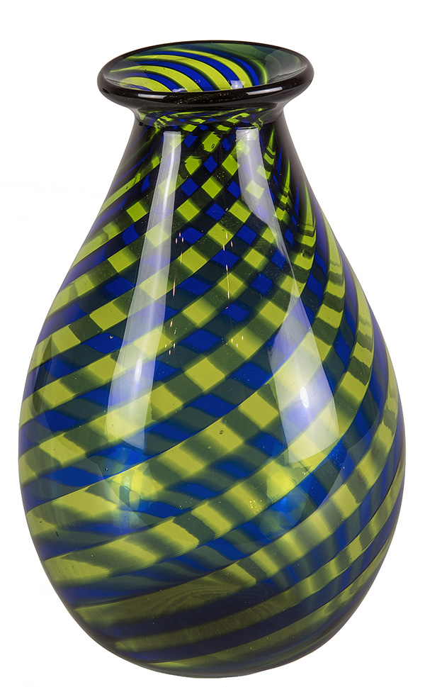 CENEDESE - MURANO, Vaso in vetro a spirale nei toni del blu e del verde, Anni ‘50, Murano, h. 17,5 cm,