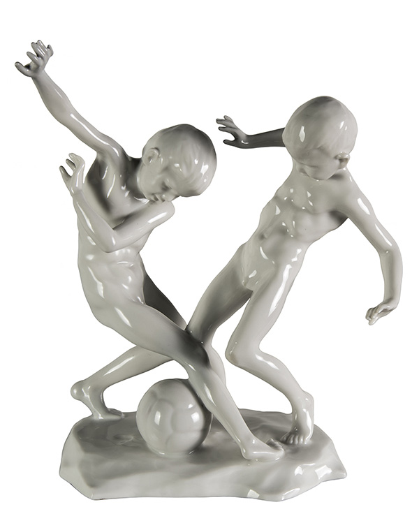 K. TUTTER (1883 - 1969), La partita di calcio, Anni ‘30, Gruppo in porcellana...