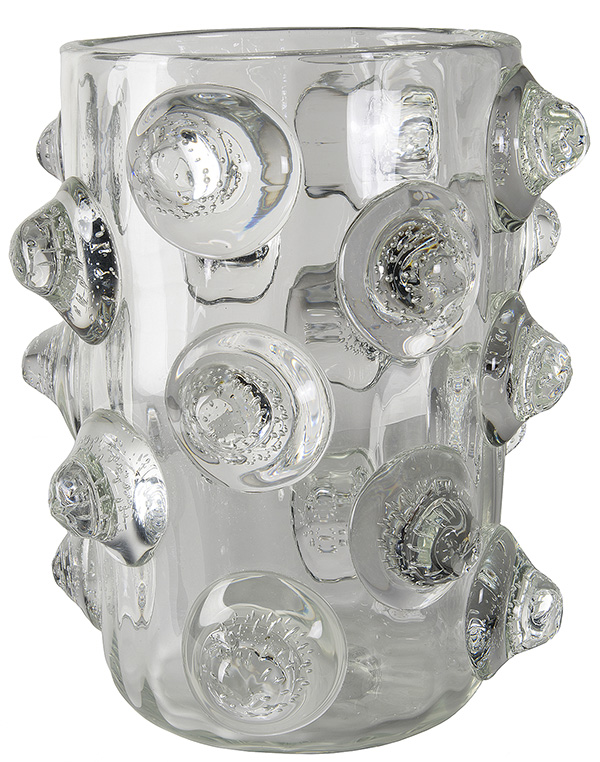 TOMMASO BARBI, Vaso “a mugne” in vetro trasparente, 1970, Murano, 33 x 28 x 28 cm, Firma e luogo sotto la base: T. BARBI, Hotel Ambasciatori, Roma