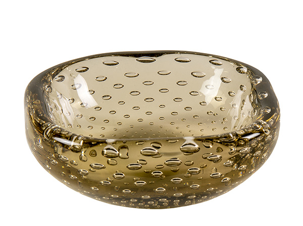 VENINI, Posacenere in vetro fumée a bolle, 1960, Murano, 4 x 10,4 x 10,4 cm,...