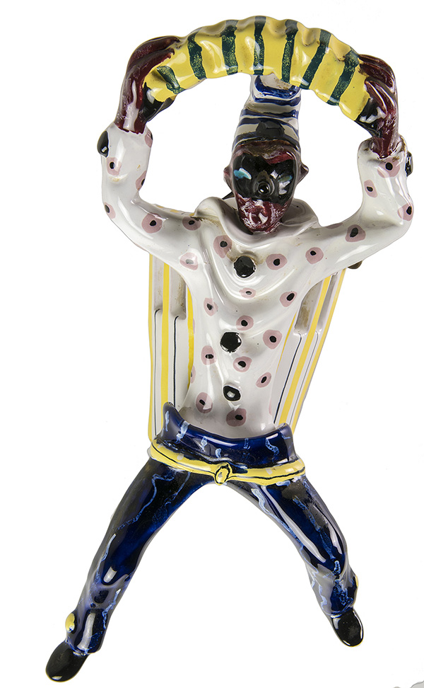 SAN POLO - VENEZIA, Due appliques con uomini in maschera, Ceramica dipinta, 23 x 13 x 12 cm, Marchio al retro: SAN POLO MADE IN ITALY