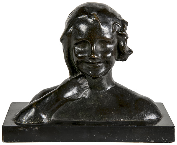 AMLETO CATALDI, Busto di fanciulla, Scultura in bronzo, 14 x 17,5 x 9 cm, Firma sul retro: A. CATALDI