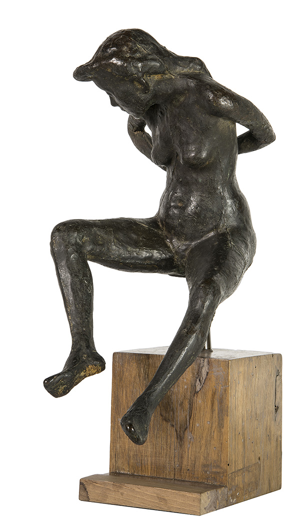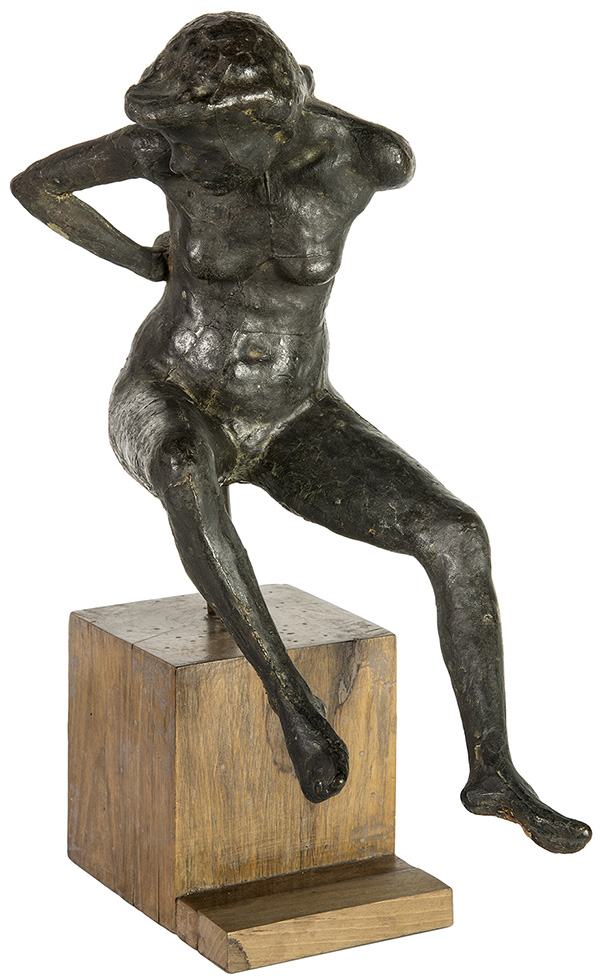 OSCAR GALLO, Nudino seduto, 1949, Scultura in bronzo, h. 35 cm (complessivi), Etichetta sotto la base di Onofri & Rumbo S. S.r.l. Autentica su foto del figlio dell’Artista