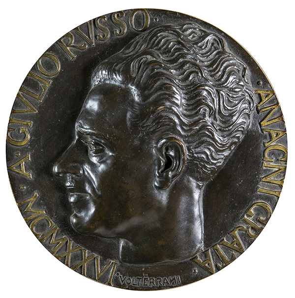 VOLTERRANO VOLTERRANI, Il podestà Giulio Russo, 1926, Bassorilievo in bronzo,...