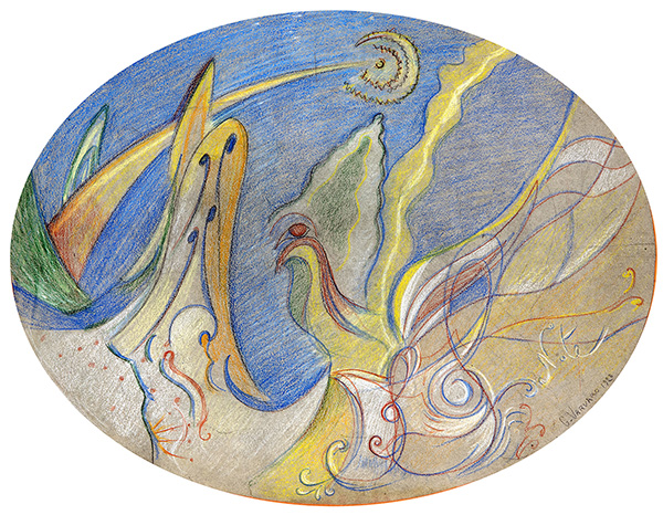 GIOVANNI VARVARO, Note musicali, 1928, Pastelli su carta, 24,5 x 32,2 cm, Firma e data in basso a destra: G. VARVARO 1928 Parere verbale positivo della Professoressa Anna Maria Ruta