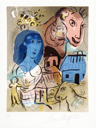 MARC CHAGALL, Hommage à Marc Chagall, Litografia, n. esemplare 15/75, 31 x 23,8 cm; 38 x 38,5 cm circa (il foglio), Firma in basso a destra: Marc Chagall Numero di esemplare in basso a sinistra PUBBLICAZIONI Mourlot 572 Cramer 80