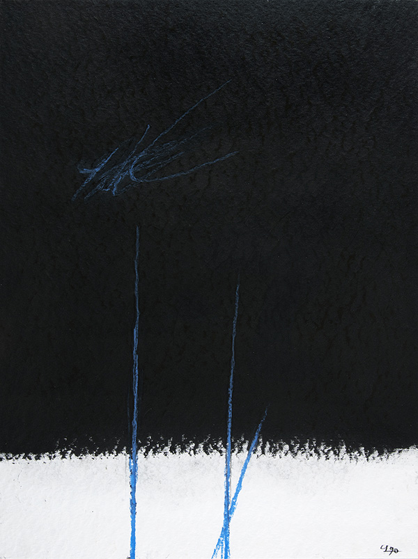 CARLO LORENZETTI , Senza titolo, 1990, Grafite acquarellata e pastello su carta, 60 x 45 cm circa, Iniziali e data in basso a destra: C L 90 Etichette al retro della Galleria La Scaletta di San Polo di Reggio Emilia e del Centro Mascarella di Bologna PUBBLICAZIONI Disegno Italiano 22, Galleria La Scaletta, n. 258
