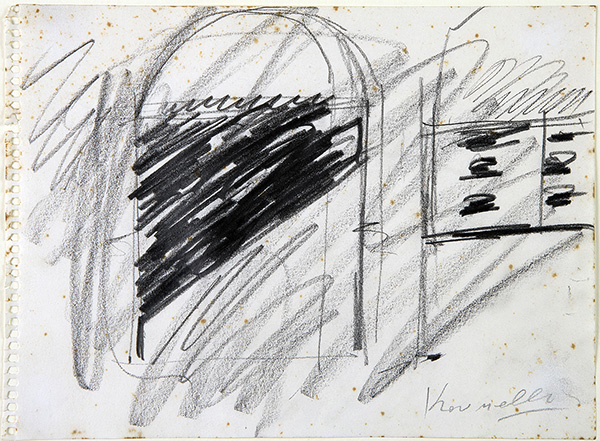 JANNIS KOUNELLIS, Senza titolo, 1985 circa, Carboncino su carta, 18,5 x 24,5 cm, Firma in basso a destra: Kounellis Etichetta e timbro al retro della Galleria Ugo Ferranti di Roma Autentica di Ugo Ferranti del 20 gennaio 1999