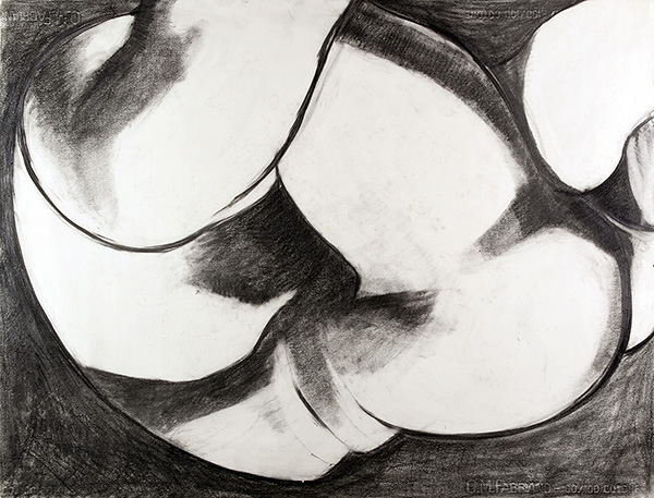 TANO FESTA, Astratto, 1953, Carboncino su carta, 70 x 90 cm, Dedica, firma e data al retro: A Indro Montanelli con l’amicizia, T. Festa, 16-7-53