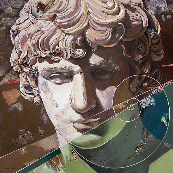LAURA MIGOTTO, Antinoo, 2016, Tecnica mista su tela, 90 x 90 cm, Autentica su foto dello Studio d’Arte Laura Migotto di Roma, n° TMT/16118