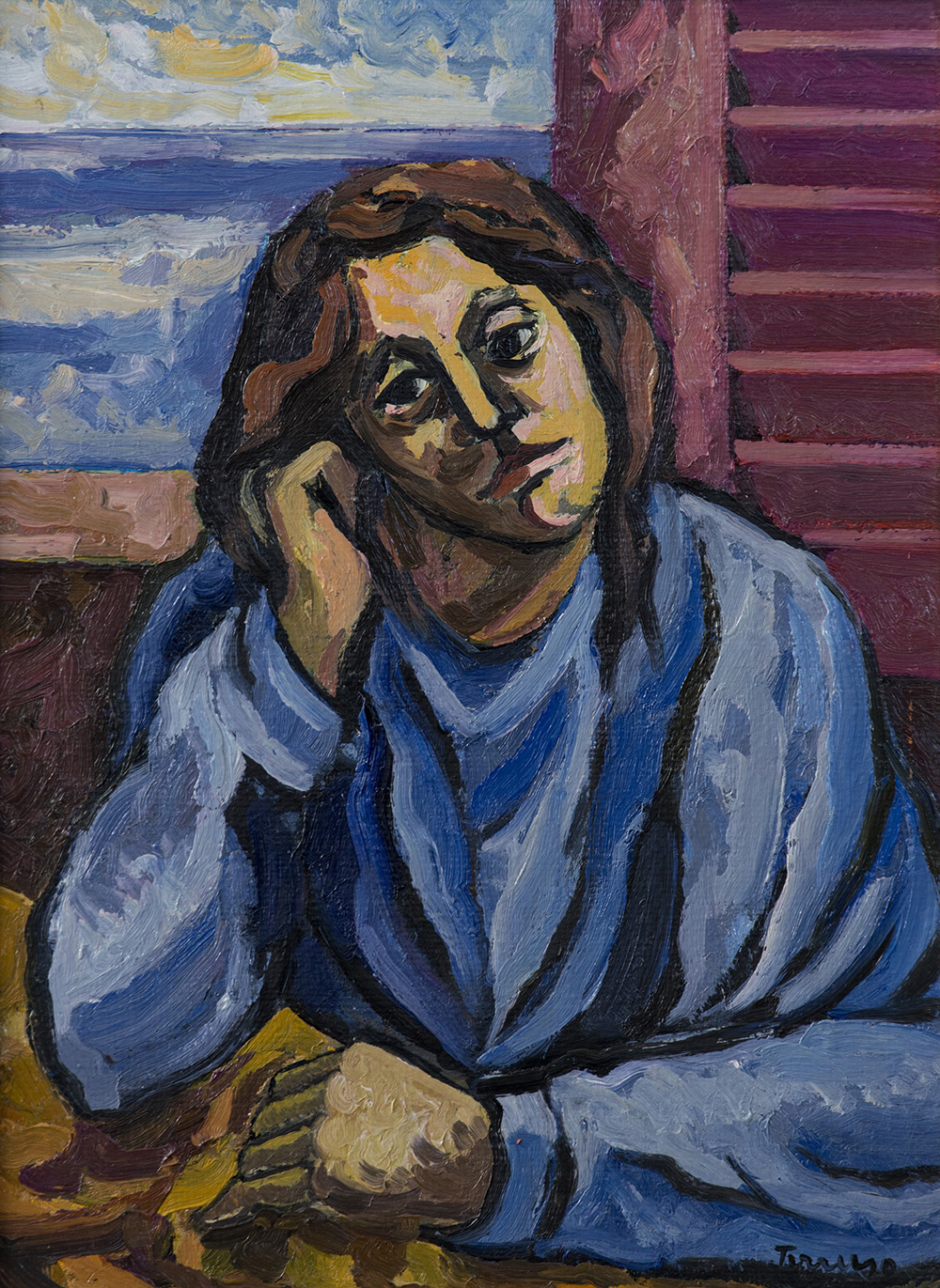 SAVERIO TERRUSO (1939-2003) Figura Olio su tela cm 40x30 Firma al fronte...