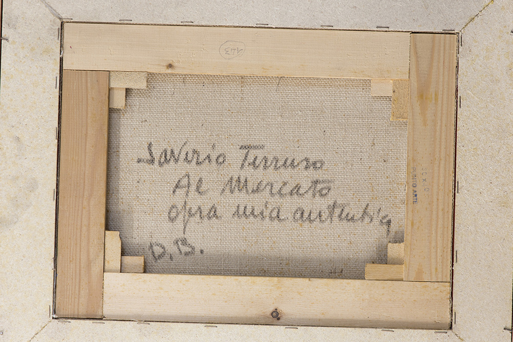 SAVERIO TERRUSO (1939-2003) Al mercato Olio su tela cm 30x40 Firma al fronte...
