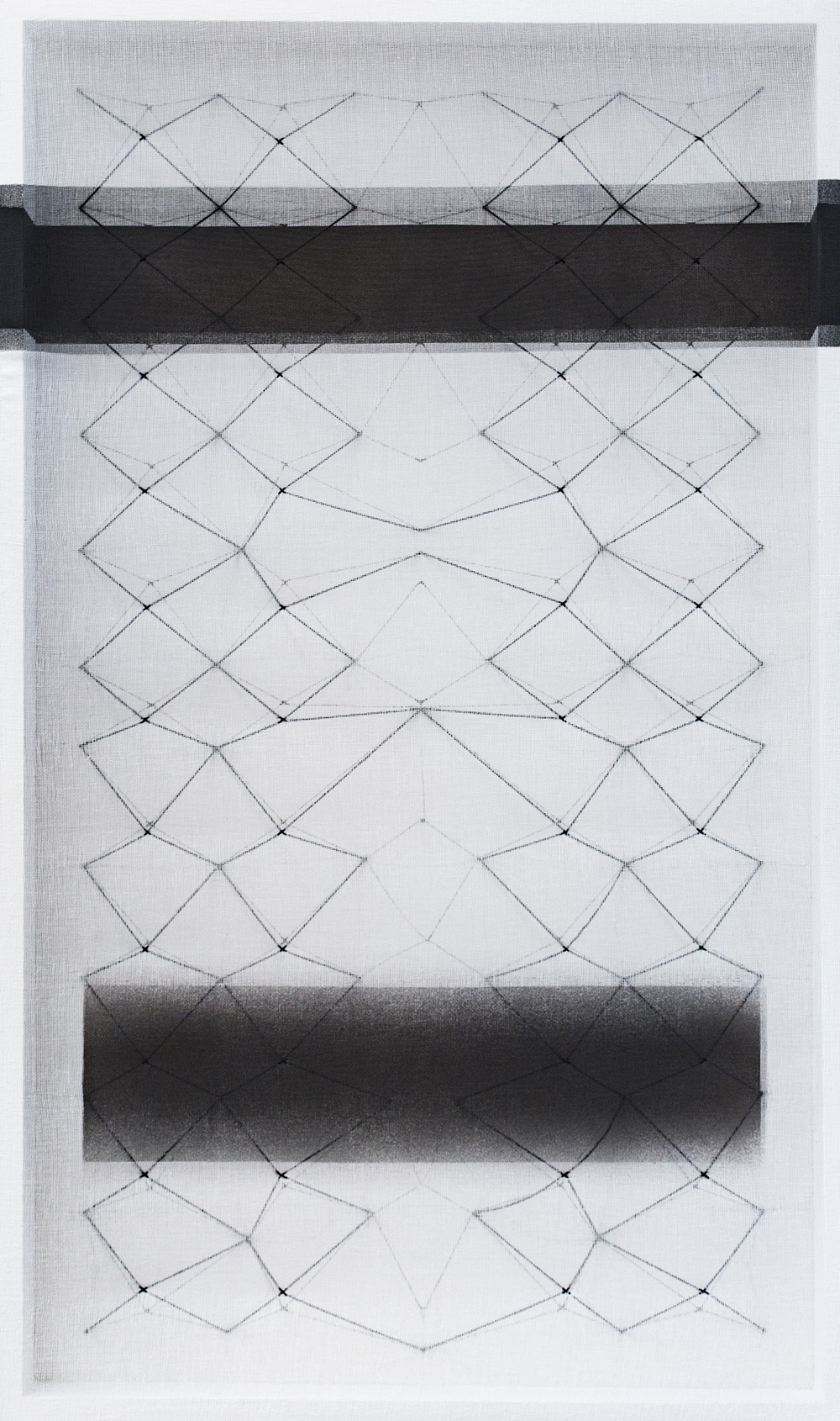 EMANUELA FIORELLI (1970) Os-cura-menti, 2013 Tarlatana tinta e filo su tela...