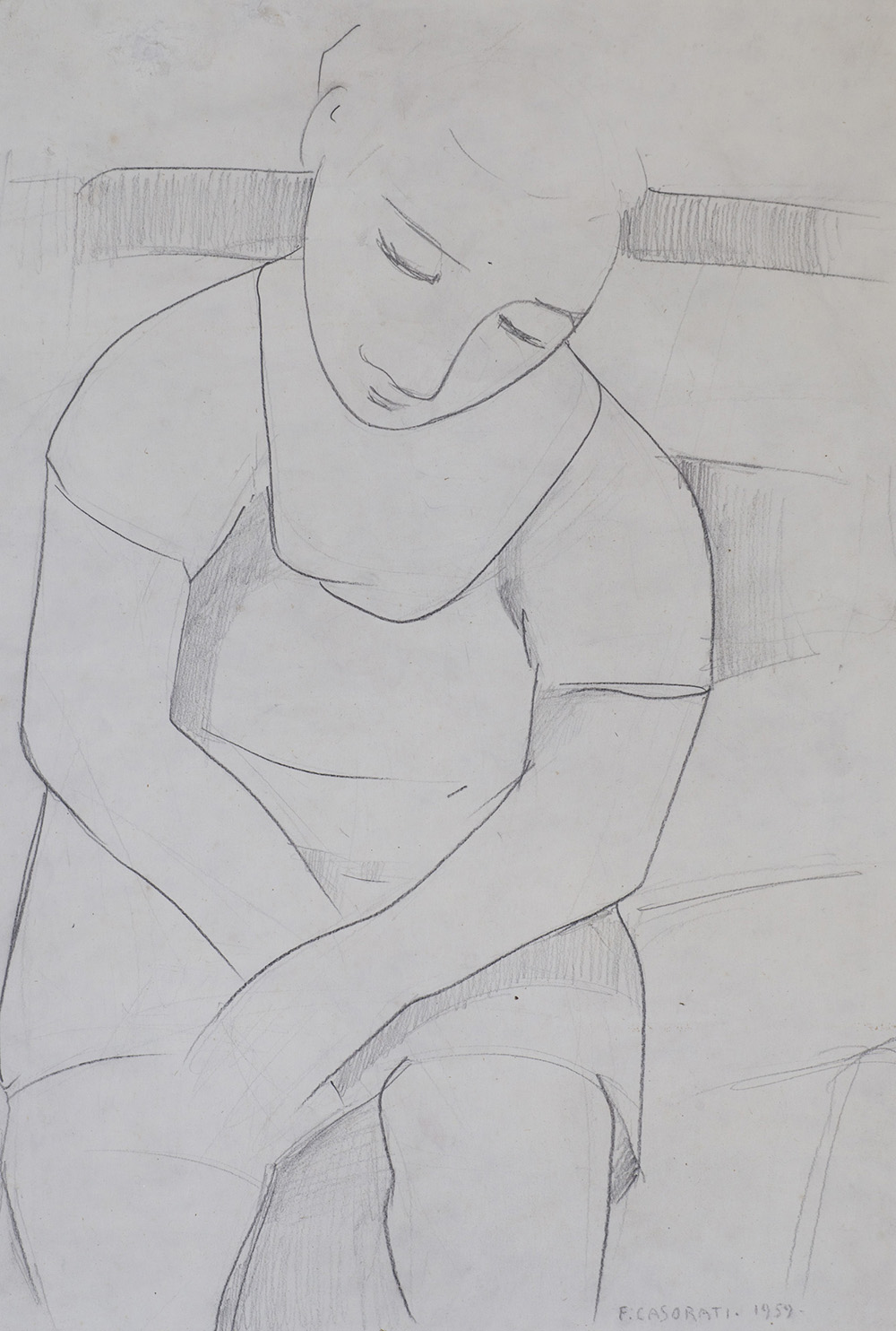 Lot 609 | FELICE CASORATI (1883-1963) Figura, 1959 Matita su carta cm 49x33 Firma e...