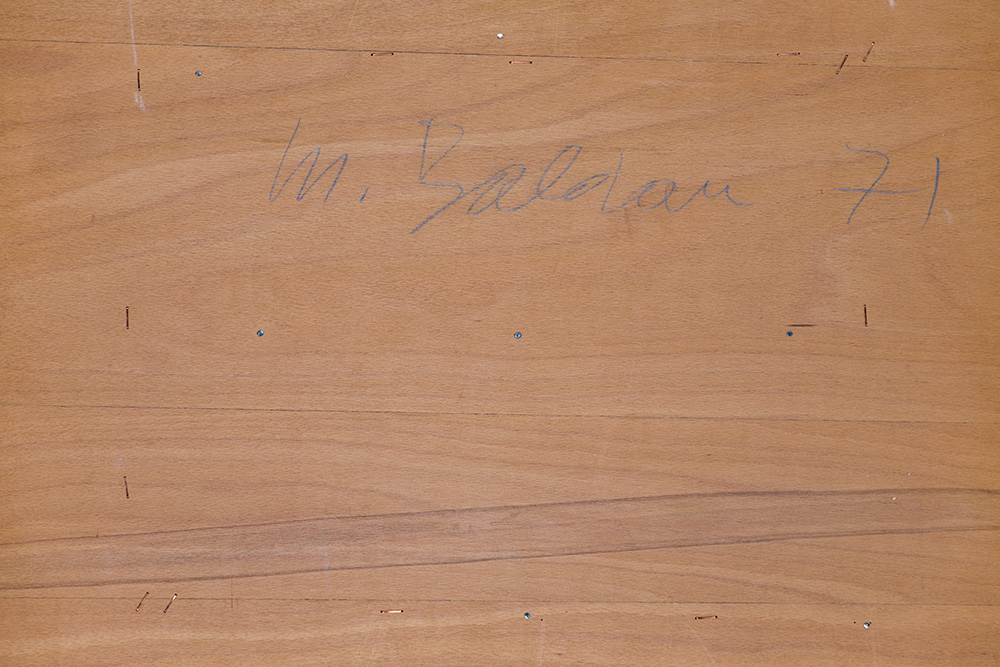 MARIO BALDAN (1933-1996) Senza titolo, 1971 Tecnica mista su tela di juta...