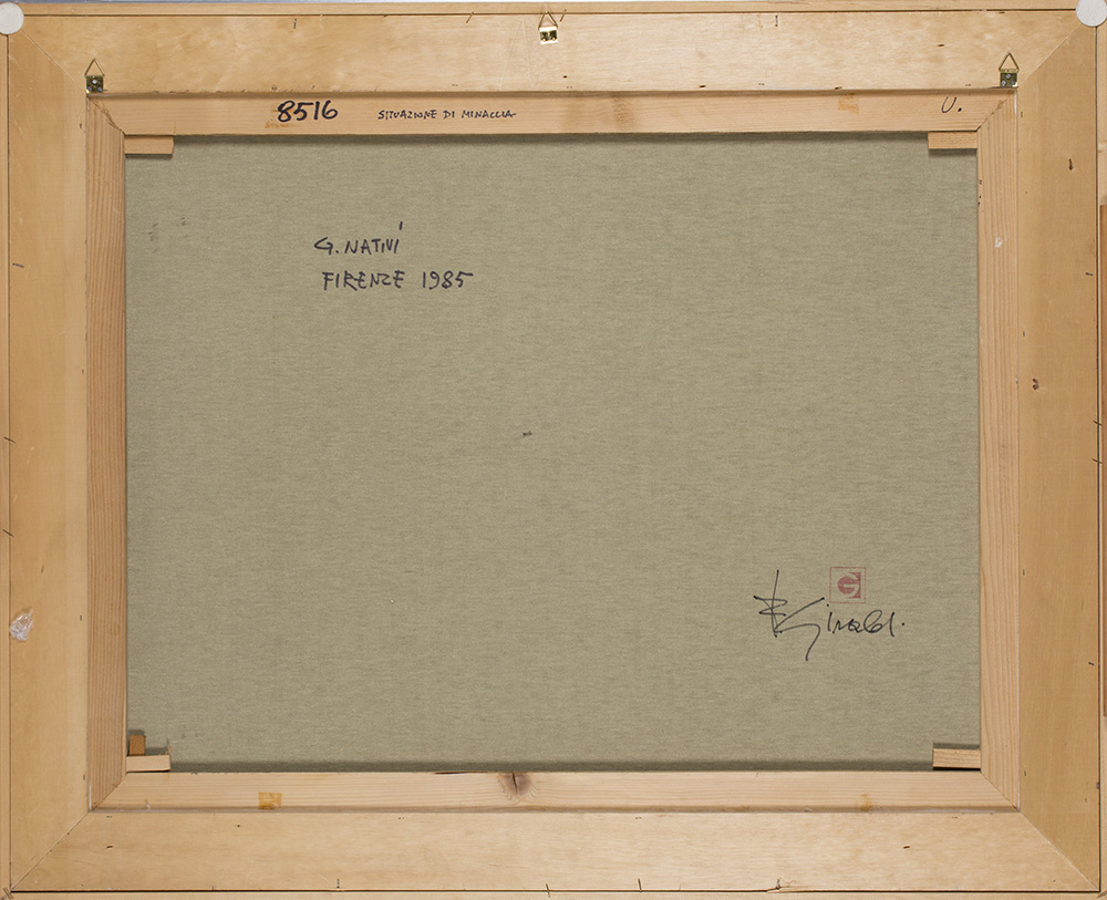 GUALTIERO NATIVI (1921-1999) Situazione di minaccia, 1985 Tecnica mista su...