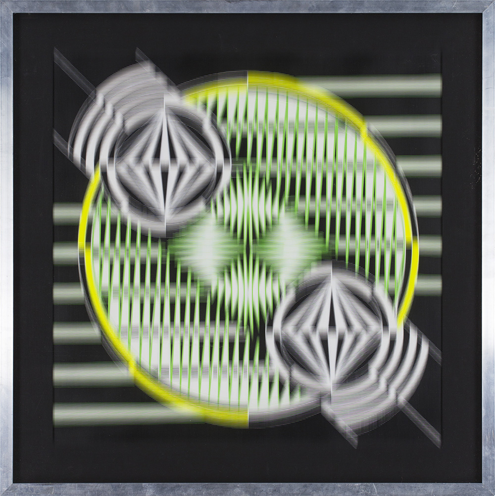 Tecnica mista su cartoncino con copertura in plexiglass zigrinato a linee orizzontali