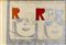 Pittura argento, pittura rossa e tecnica mista su cartoncino