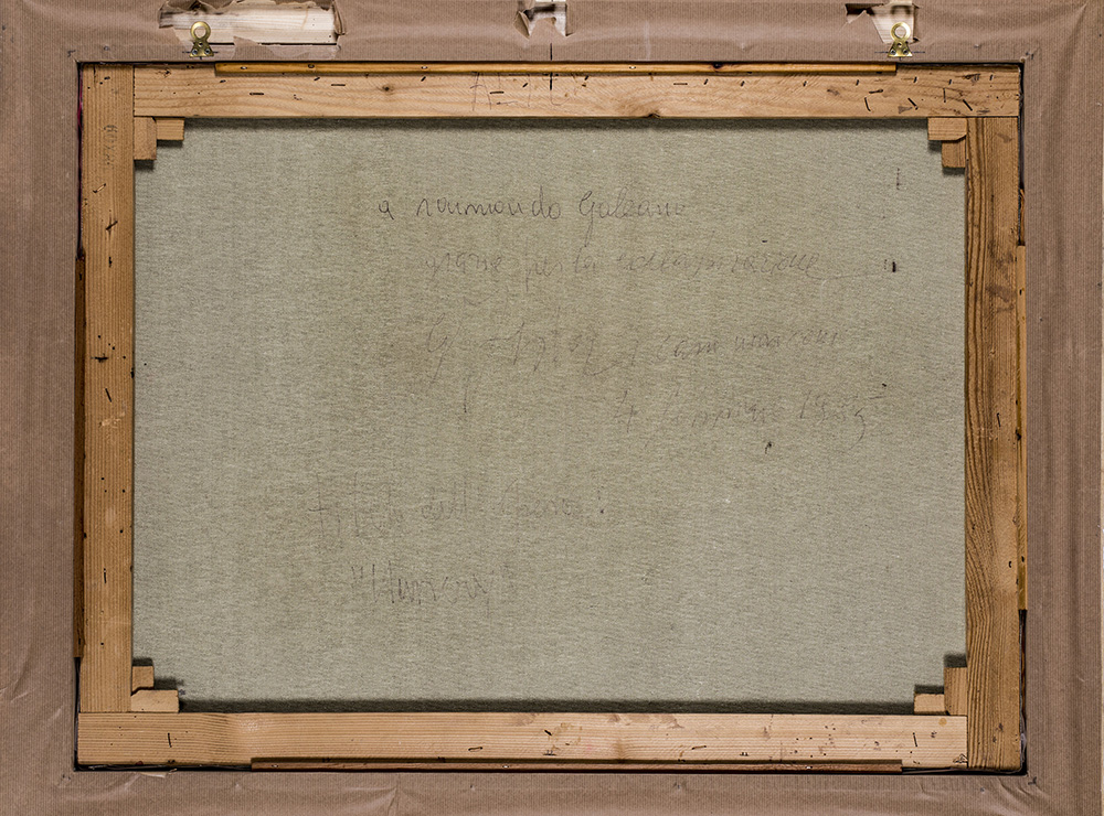 Firma, titolo, datazione, località e dedica ad personam al retro