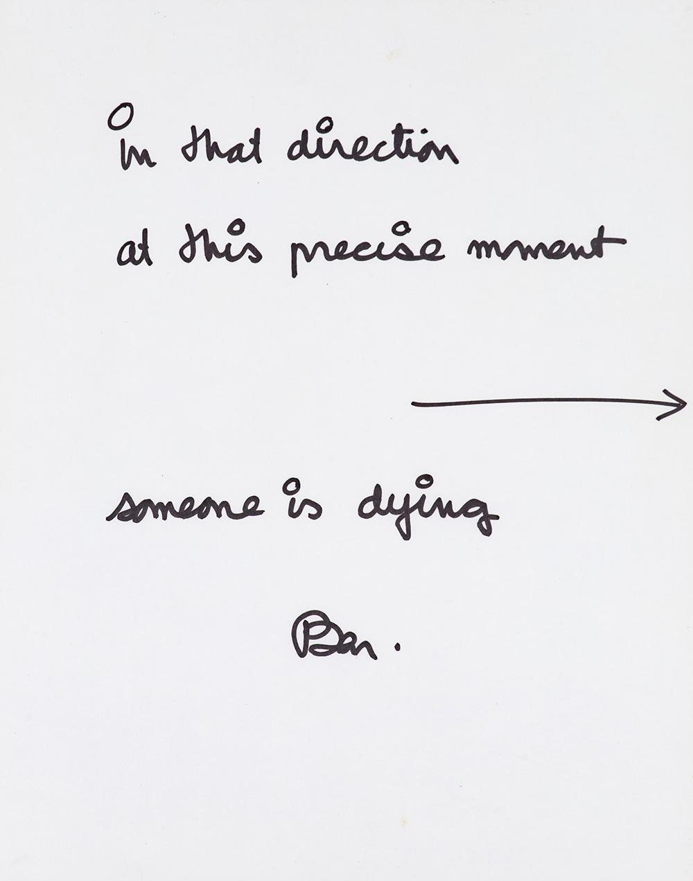 BEN VAUTIER (1935) In that direction at this precise moment someone is dying...