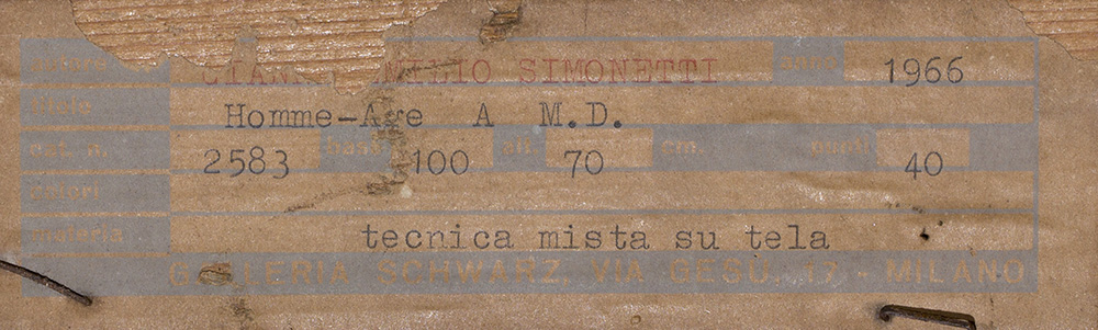 GIANNI EMILIO SIMONETTI (1940) Homme-Age A M.D., 1966 Tecnica mista su...