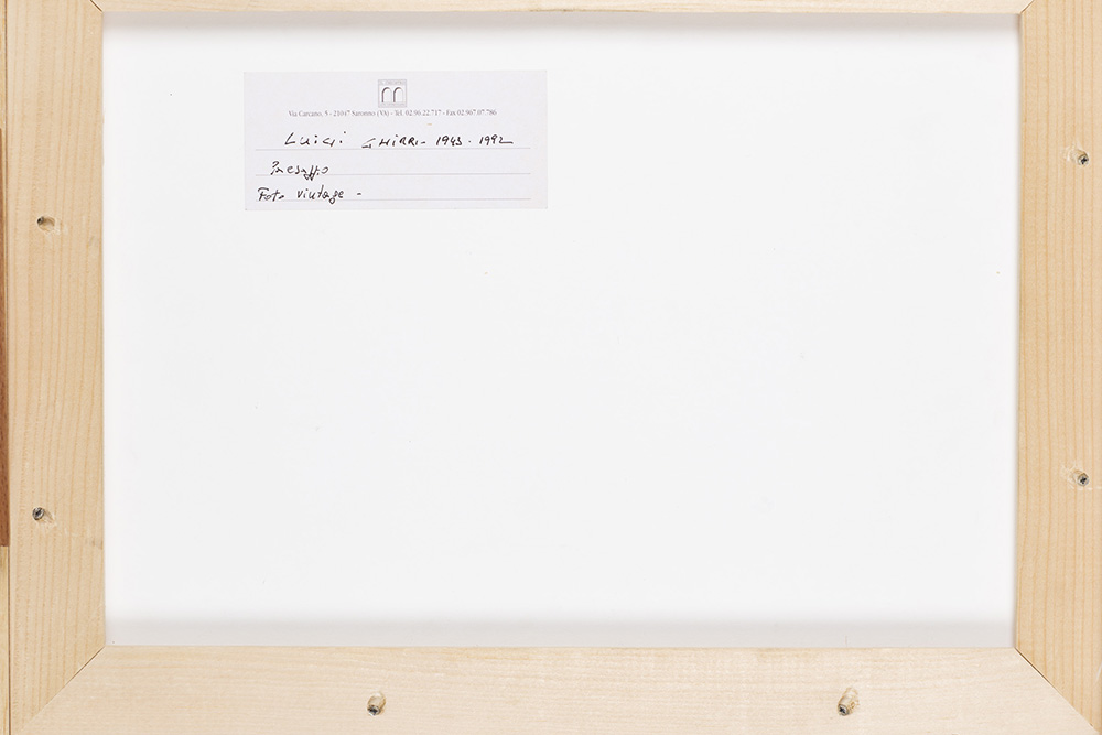 Etichetta della Galleria Il Chiostro (VA) al retro del cartone protettivo