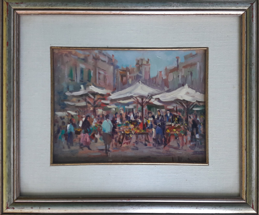 Lot 12 | Michele Montanari "Verona, Piazza delle Erbe" - Olio su tavola - cm 18x24 -...