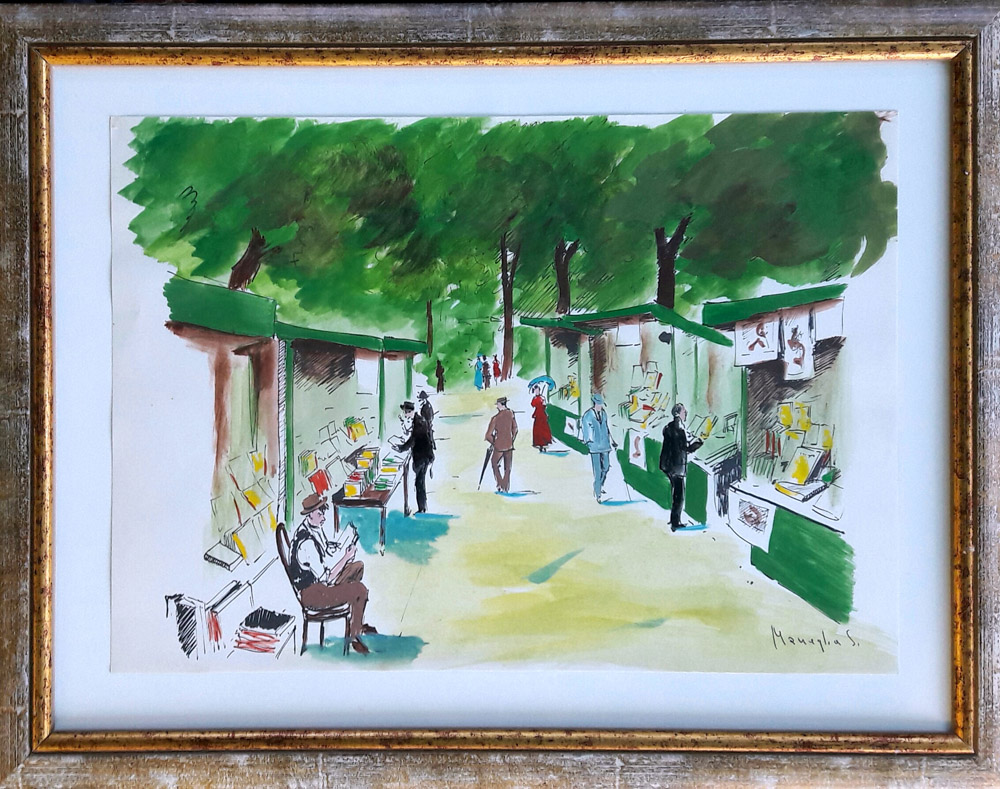 S. Maneglia "Mercatino di corso Siccardi" - Acquerello su carta - cm 24,5x34