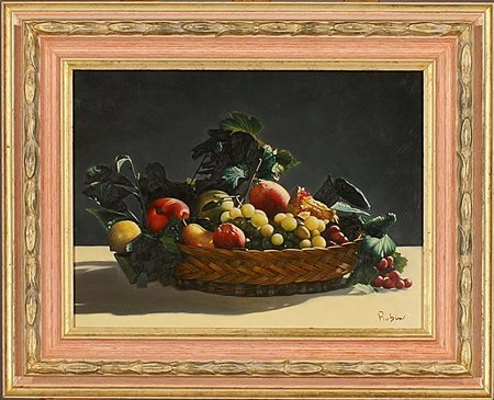 Rubin (XX secolo), " Cesto", olio su tavola, cm.30x40, firmato in basso a destra.
