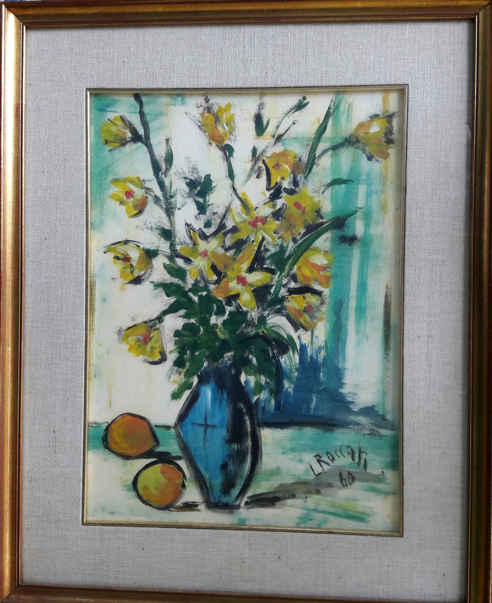 Lot 38 | Luigi Roccati "Vaso con fiori" - 1960 - Tecnica mista su cartoncino rigido -...