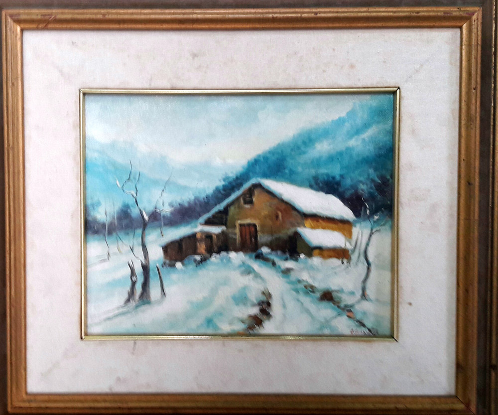 Antonio Nunziante "Inverno" - Olio su tela - cm 24x30 - Firma dell'artista in basso a dx - Etichetta al retro dell'atelier dell'artista - Firma dell'artista e titolo al retro