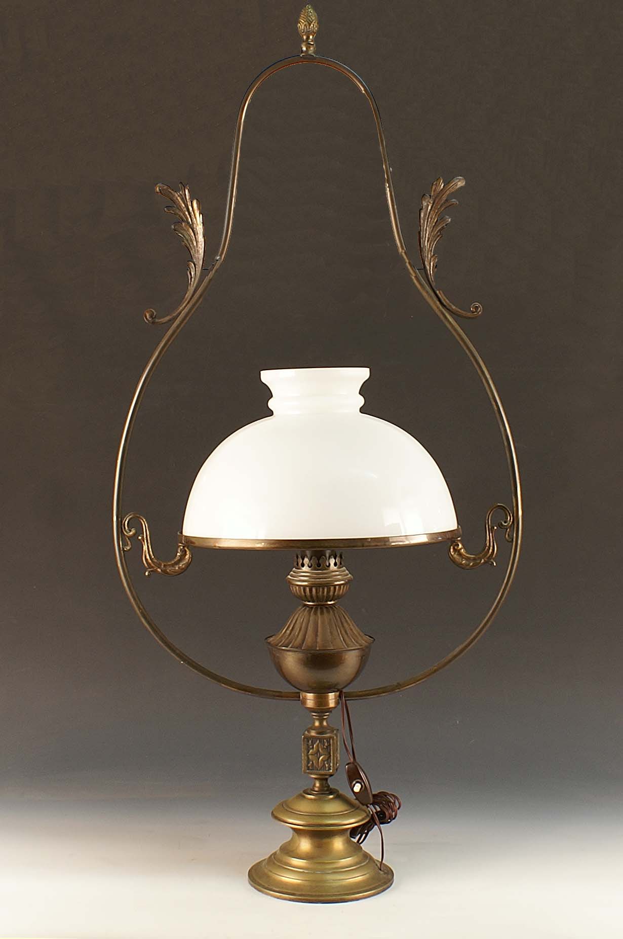 Lampada in ottone con coppa paralume in opalina bianca, vecchia manifattura,...