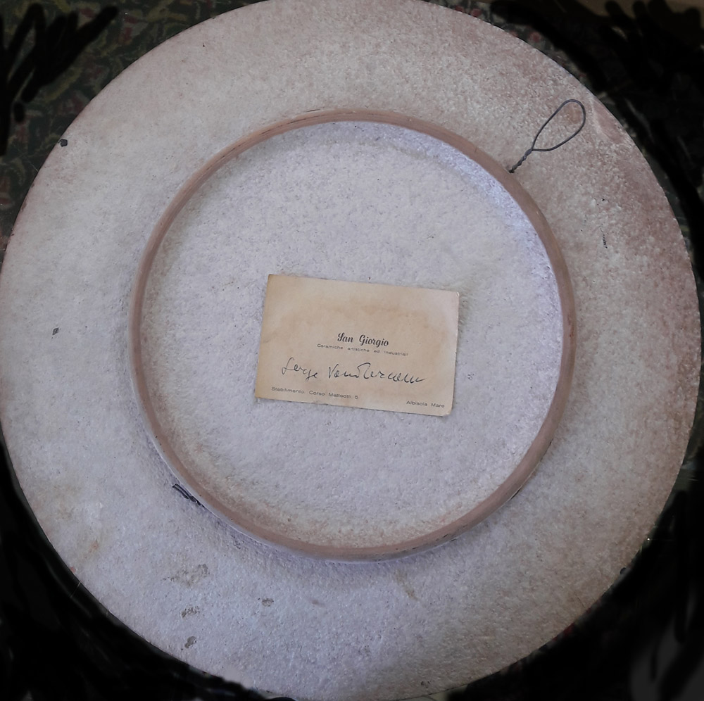 Serge Vandercam " Paesaggio" - Anni '80 - Esemplare Unico - Olio su ceramica -diametro cm 38 - Etichetta al retro di San Giorgio Ceramiche artistiche ed industriali, Albisola con firma dell'artista