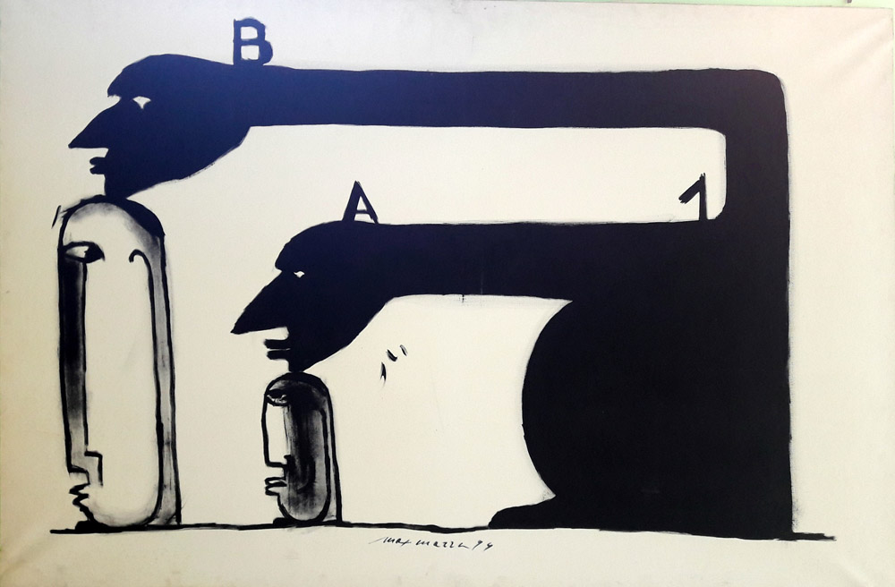 Max Marra "Faccia nera" - 1999 - Tecnica mista su tela - cm 100x150 - Firma dell'artista e data in basso al centro