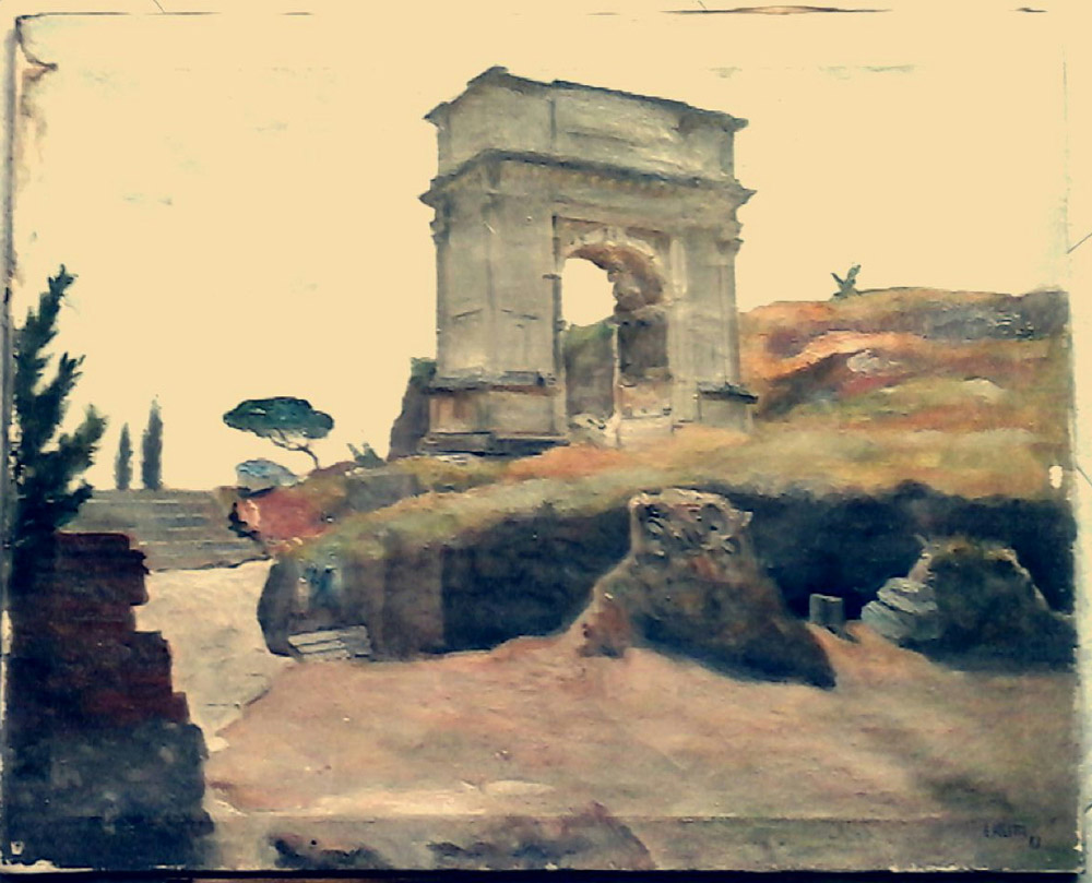 "Arco di Augusto" - 1933 - Olio su tela - cm 63x68 - Firma dell'artista in basso a sx - Lievi cadute di colore