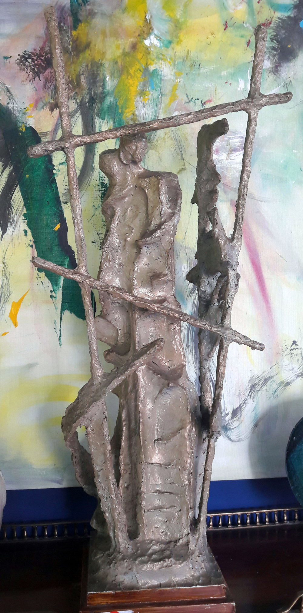 Firma non decifrata "Amanti" - Scultura in gesso patinato - cm 82x21x21