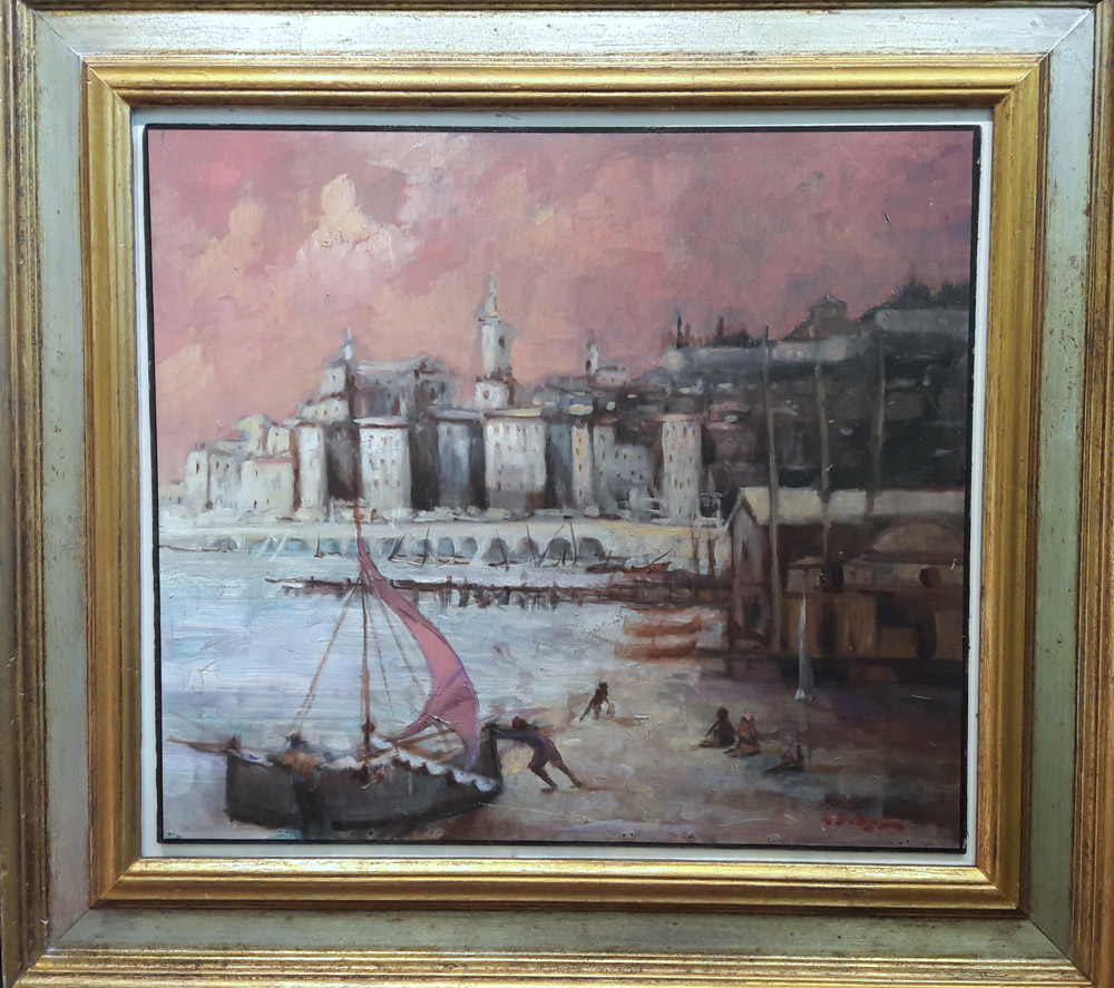 Giovanni De Agostini "Il porto di Mentone" - Olio su masonite - cm 40x45 -...