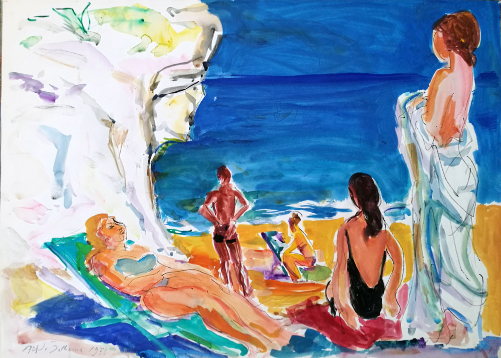 Alfredo Beltrame "Le bagnanti" - 1978 - Tempera su cartoncino - cm 50x70 - Firma dell'artista e data in basso a sx - Provenienza Galleria Accademia To