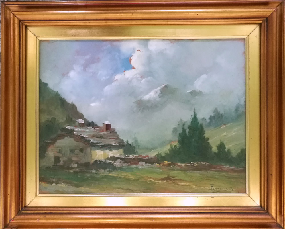 Angelo Forneris "Casolare" - Olio su tavola - cm 40x30 - Firma dell'artista...
