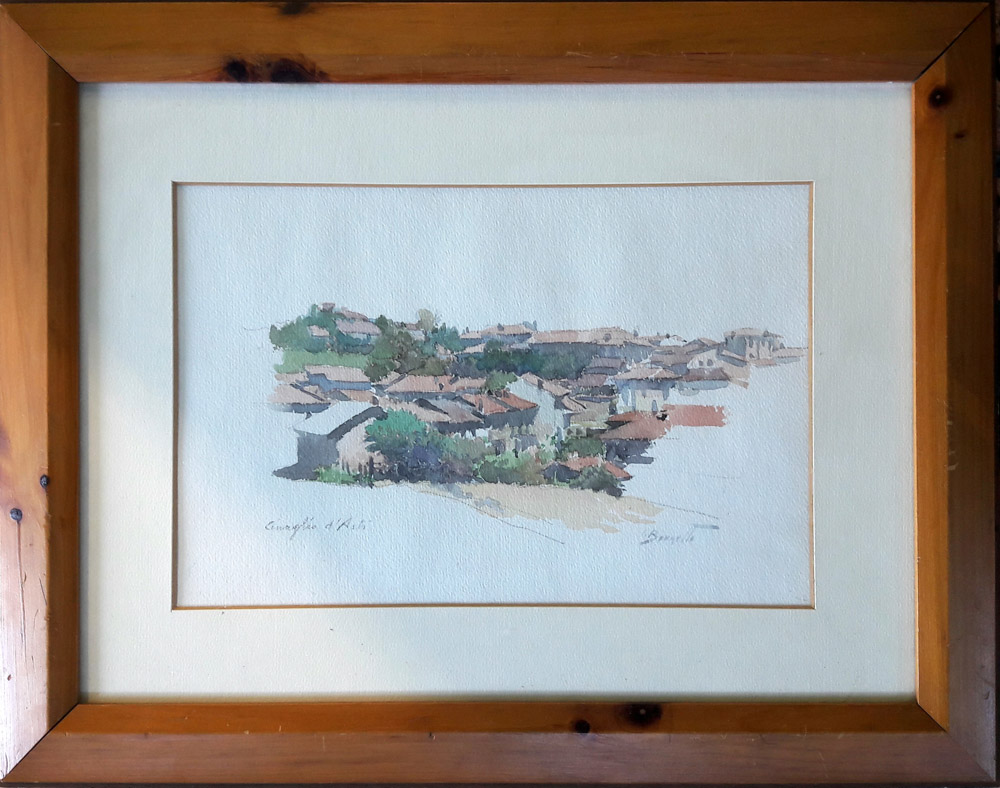 Silvio Brunetto "Cinaglio d'Asti" - Acquerello su carta - cm 21,5x32,5 - Firma dell'artista in basso a dx
