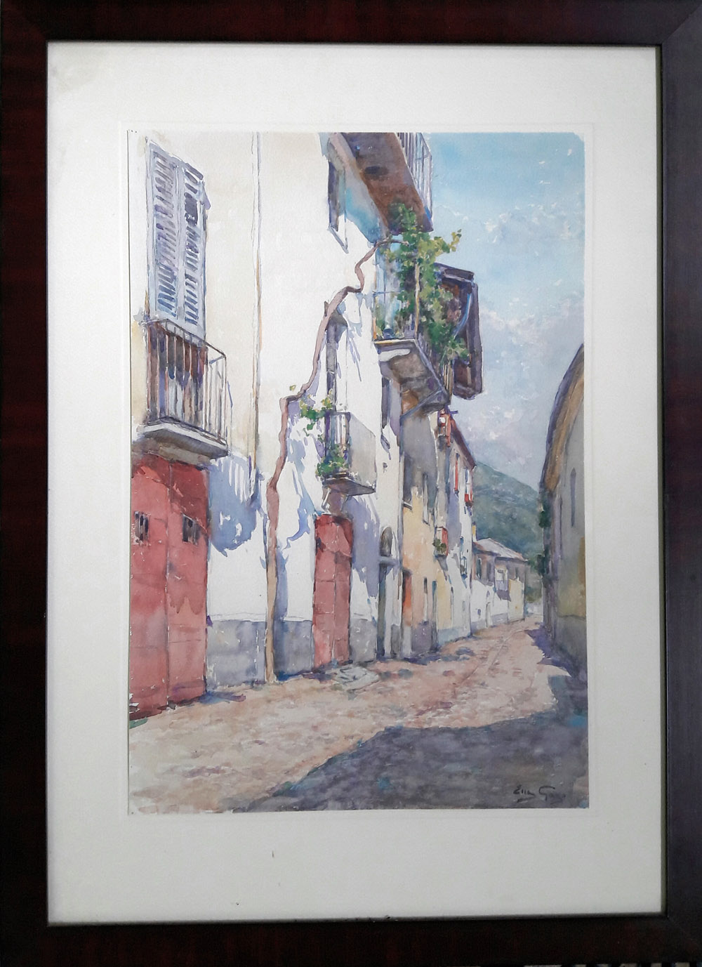 Eugenio Gais "Viottolo di paese" - Acquerello su carta - cm 50x34 - Firma dell'artista in basso a dx