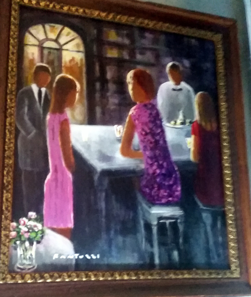 Eliano Fantuzi "Al Bar" olio su tela cm 50x40.Firma in basso a sx, Firma al retro