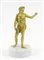 Scultura in bronzo dorato raffigurante personaggio, su base circolare in marmo bianco. H. tot cm. 20.
