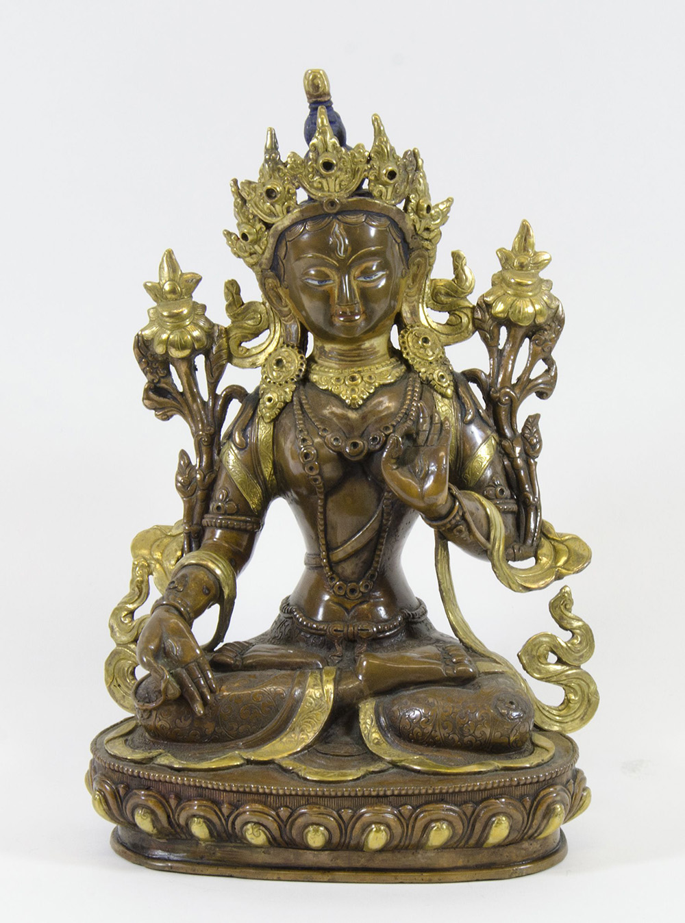 Scultura in bronzo raffigurante divinità orientale. H. cm. 28,5.