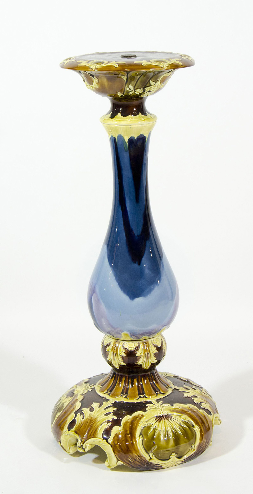 Colonna in ceramica policroma decorata a motivi floreali. Inizio XX secolo. H. cm. 81.