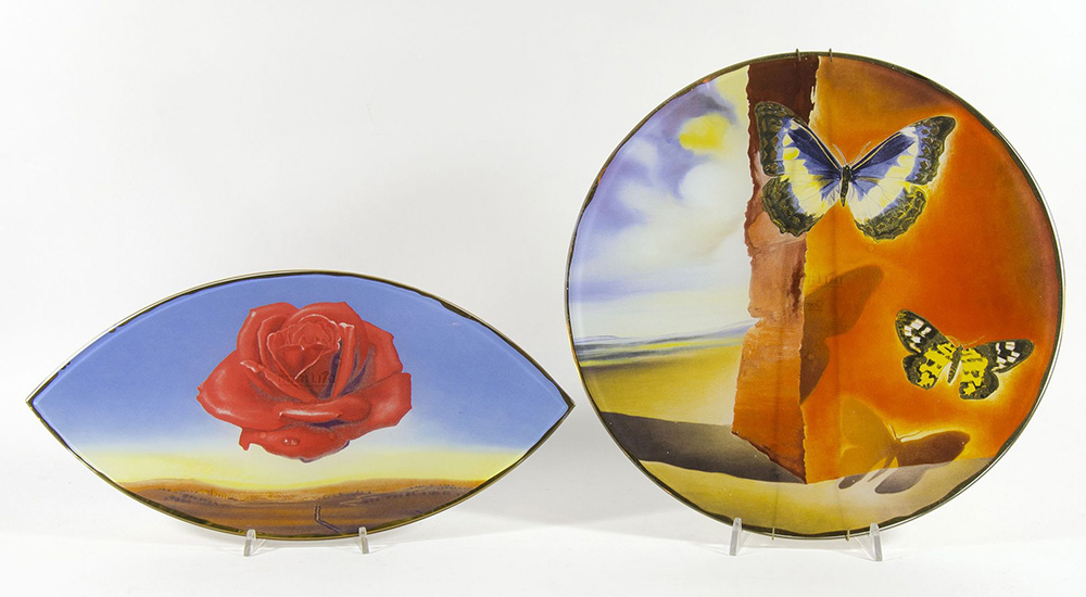 Salvador Dalì Spagna 1904-1989 Lotto di 2 piatti in vetro della serie Goebel 2008.