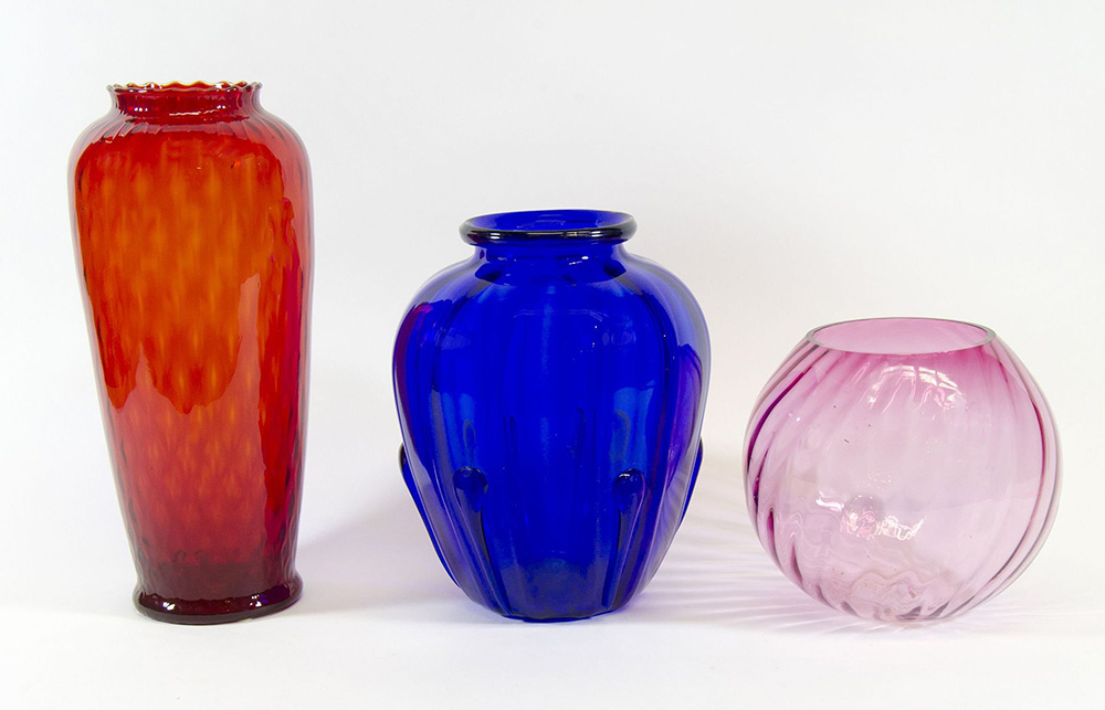 Lotto di 3 vasi in vetro. H. max cm. 34.