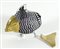 Grande scultura in vetro raffigurante pesce con testa e pinna in bronzo. Lung. cm. 36.